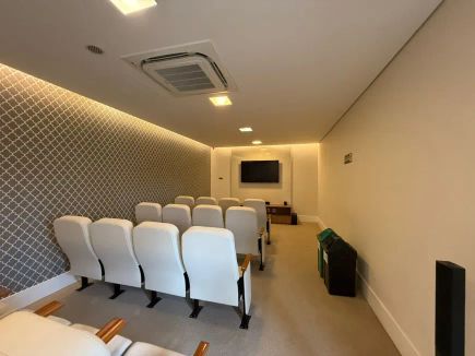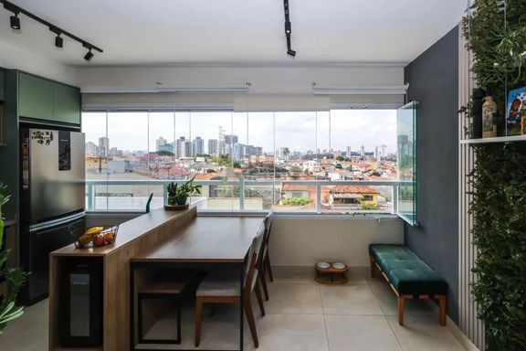 O espaço é otimizado com armários planejados, oferecendo amplo espaço de armazenamento. A varanda gourmet ampla toda planejada pode fazer a vez de cozinha com uma mesa grande para acomodar seus convidados ou familiares, criando um ambiente perfeito para relaxar.