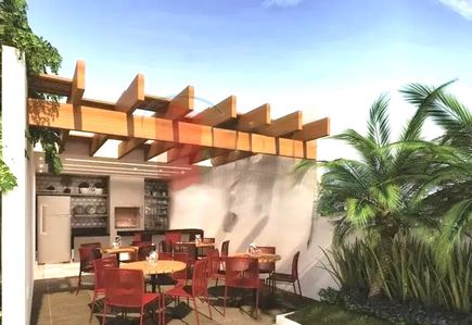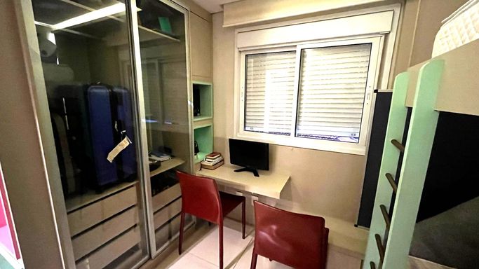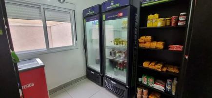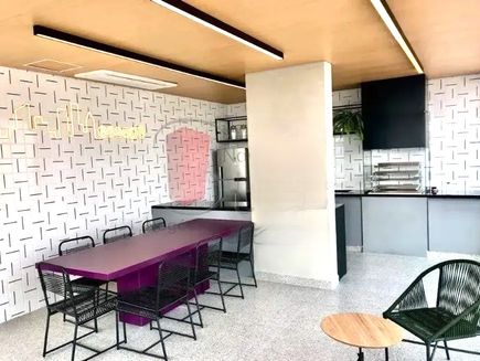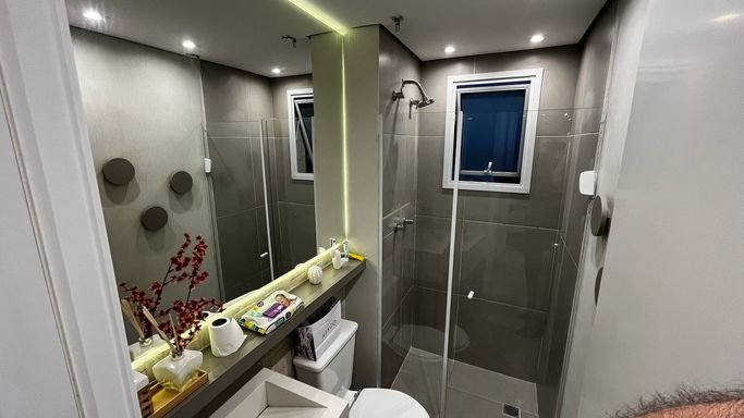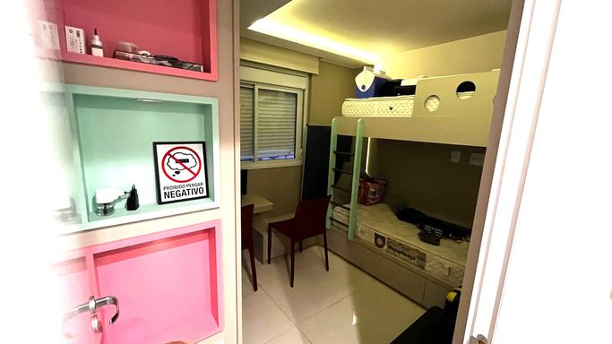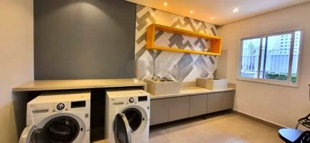 Predio com portaria virtual, piscina, mercadinho, churrasqueira, brinquedoteca, quadra, lavanderia, salão de festas e sauna.