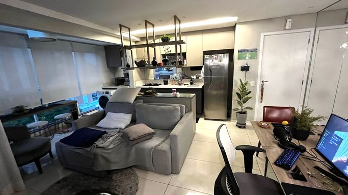 Excelente iluminação natural, todo em conceito aberto com 2 quartos com armários planejados.