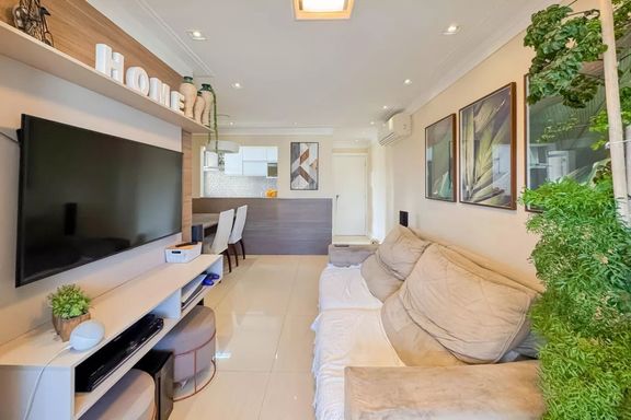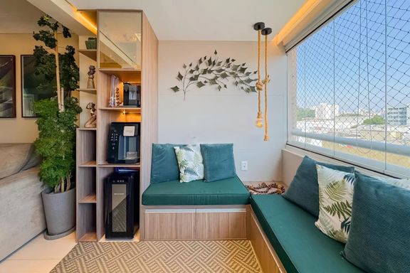 Varanda Grill: Uma característica notável deste apartamento é a varanda grill ampla integrada à sala de estar. Este espaço versátil é ideal para receber amigos e familiares, oferecendo um local agradável para churrascos e reuniões ao ar livre, al[em de proporcionar um espa;o diferenciado no apartamento.