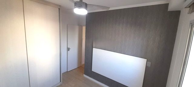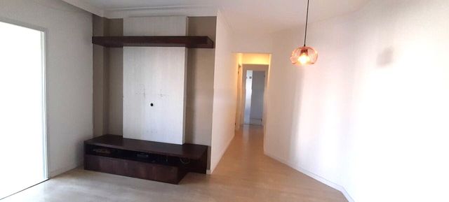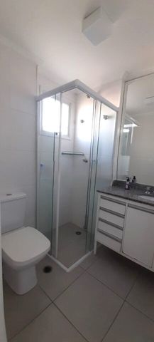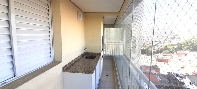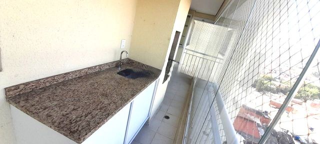 Apartamento 64m² com 2 quartos (1 suíte), sala bem iluminada para 2 ambientes, varanda envidraçada com churrasqueira e pia, cozinha planejada, área de serviço, banheiro social e 1 vaga de garagem.
