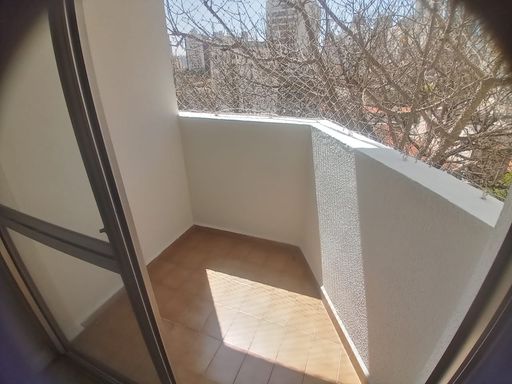 Sala para dois ambientes com sacada.