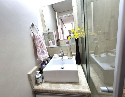 O prédio conta com área de lazer e 1 vaga coberta de garagem.