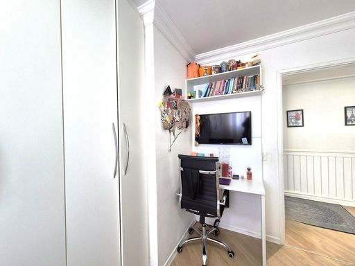 São 2 dormitórios com armários, bancada para notebook e trabalho.