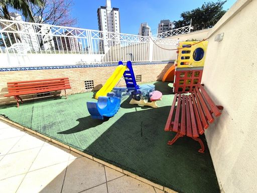 Torre única com piscina, churrasqueira, salão de festas, playground e quadra.