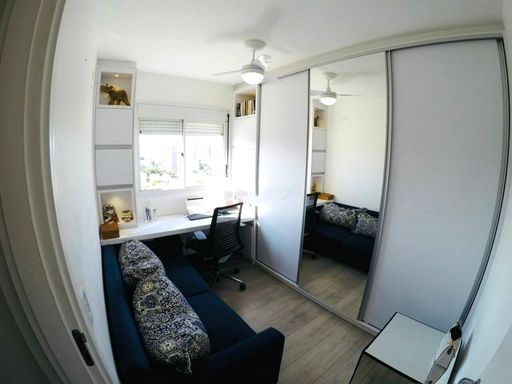 Com ambientes bem distribuídos e ensolarados pela face norte, o imóvel dispõe de 2 quartos sendo 1 suíte com armários planejados, banheiros com ventilação natural, além de uma charmosa sacada gourmet para receber amigos e familiares.