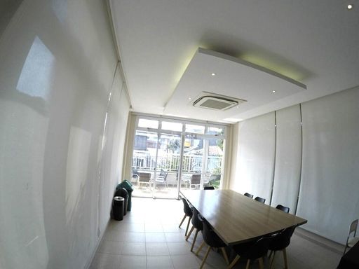 A sala ampla é integrada, permitindo luminosidade natural e ótima circulação de ar.