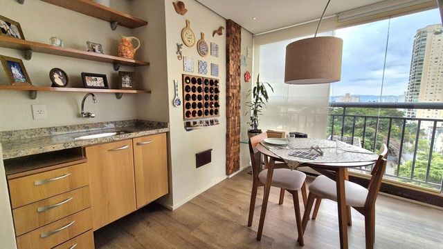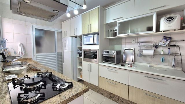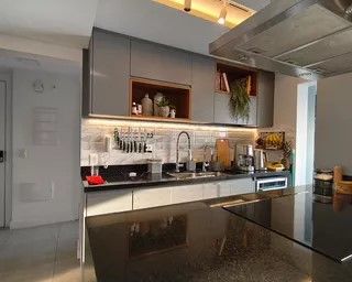 Cozinha planejada ampla com copa, o que é o diferencial, pois é quase como a cozinha de uma casa. Escritório na parte íntima, acesso isolado às suítes.