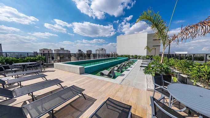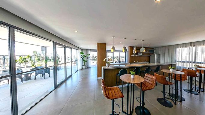 Móveis inteligentes que otimizam cada metro quadrado, além de uma varanda envidraçada charmosa para você relaxar no fim do dia, apreciando a vista deslumbrante do bairro.