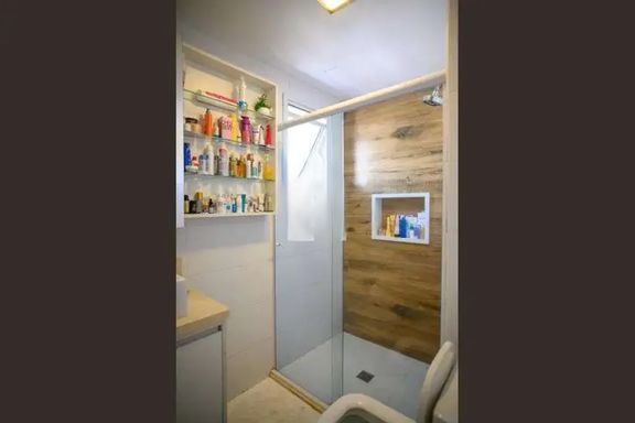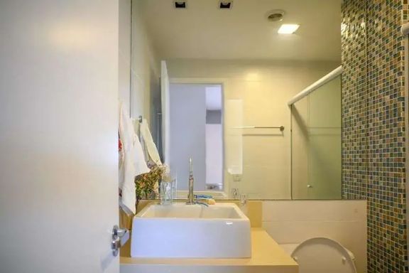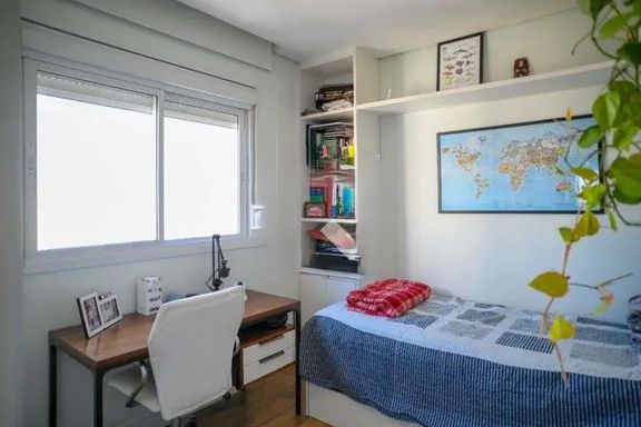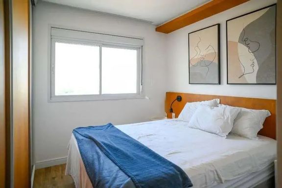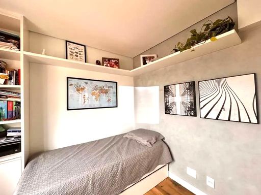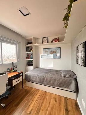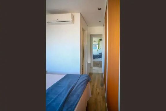 Possui 2 quartos sendo 1 suíte, ambos com ar condicionado e armários planejados.