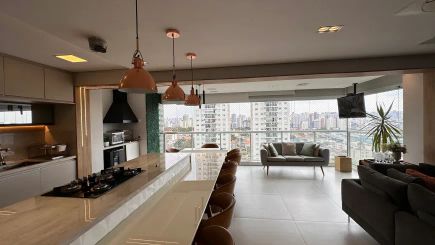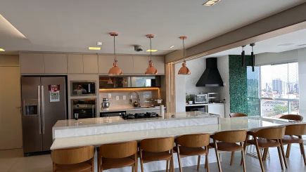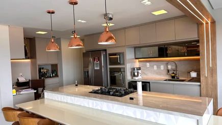 Varanda gourmet envidraáda e integrada à cozinha gourmet, onde vc poderá desfrutar de uma linda vista, além de criar momentos deliciosos em família.