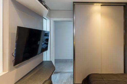 Apartamento diferenciado decorado por arquitetos, com todas as portas de correr da marca Eclisse, italiana, com sistema de amortecimento.