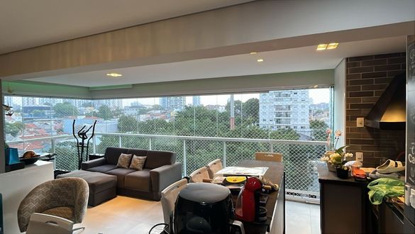 Varanda gourmet envidraçada e integrada à cozinha gourmet e à sala, onde vc poderá desfrutar de momentos inesquecíveis com pessoas queridas ou criar momentos deliciosos em família. A varanda possui exaustor de cozinha profissional instalado.